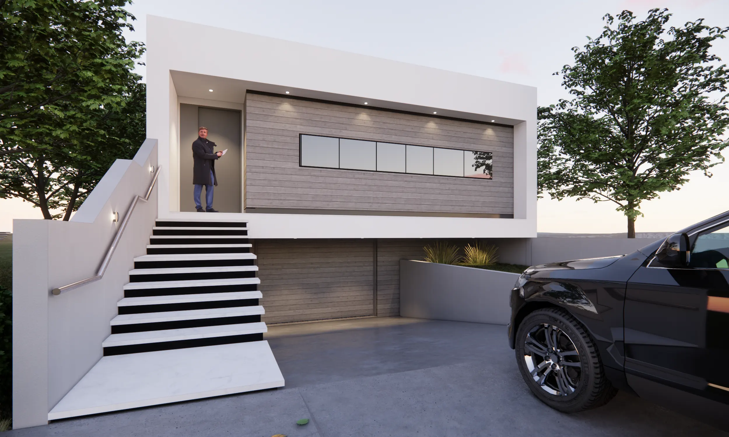 ▶️ Acceso principal con una escalera.