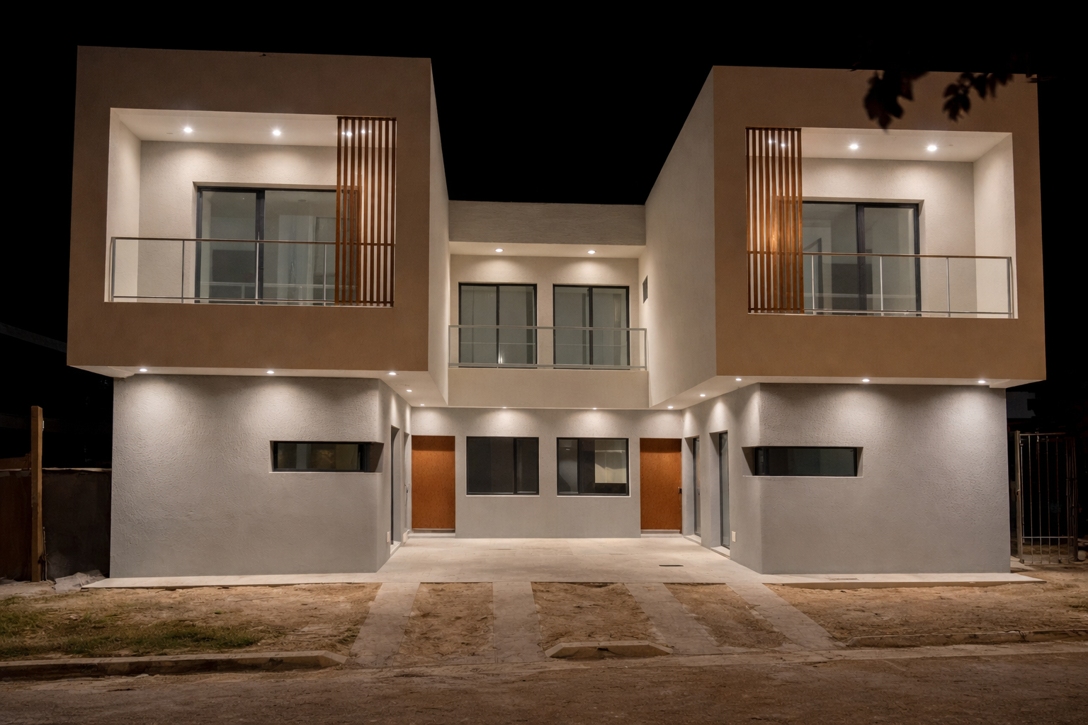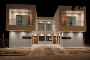 Los dúplex se ubican en un terreno acotado de 10x13 en barrio sur, logrando maximizar su funcionalidad para que cada unidad tenga su propio ingreso vehicular.