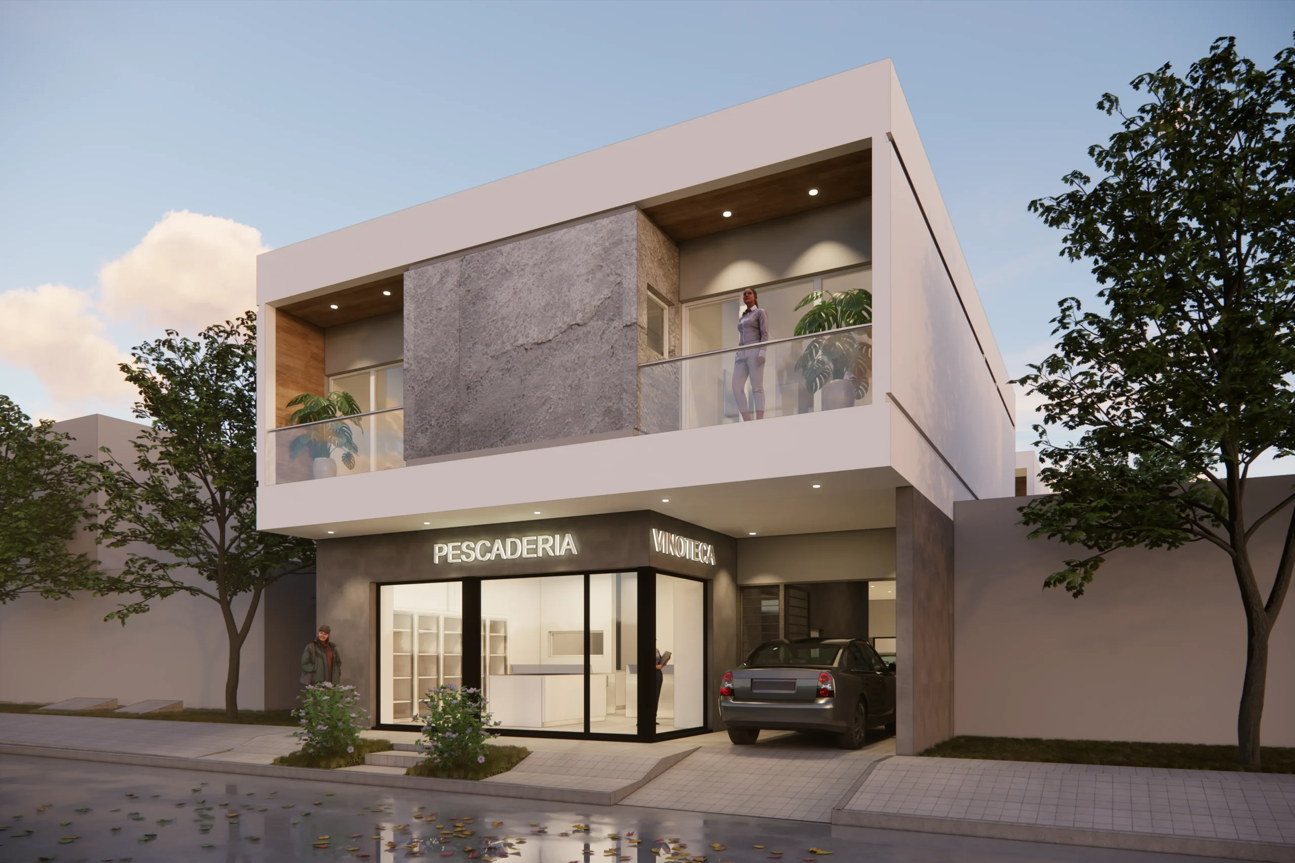 Este proyecto se implanto en un terreno de 10x30 metros ubicando en la planta baja un amplio Local Comercial con amplios ventanales hacia la calle.