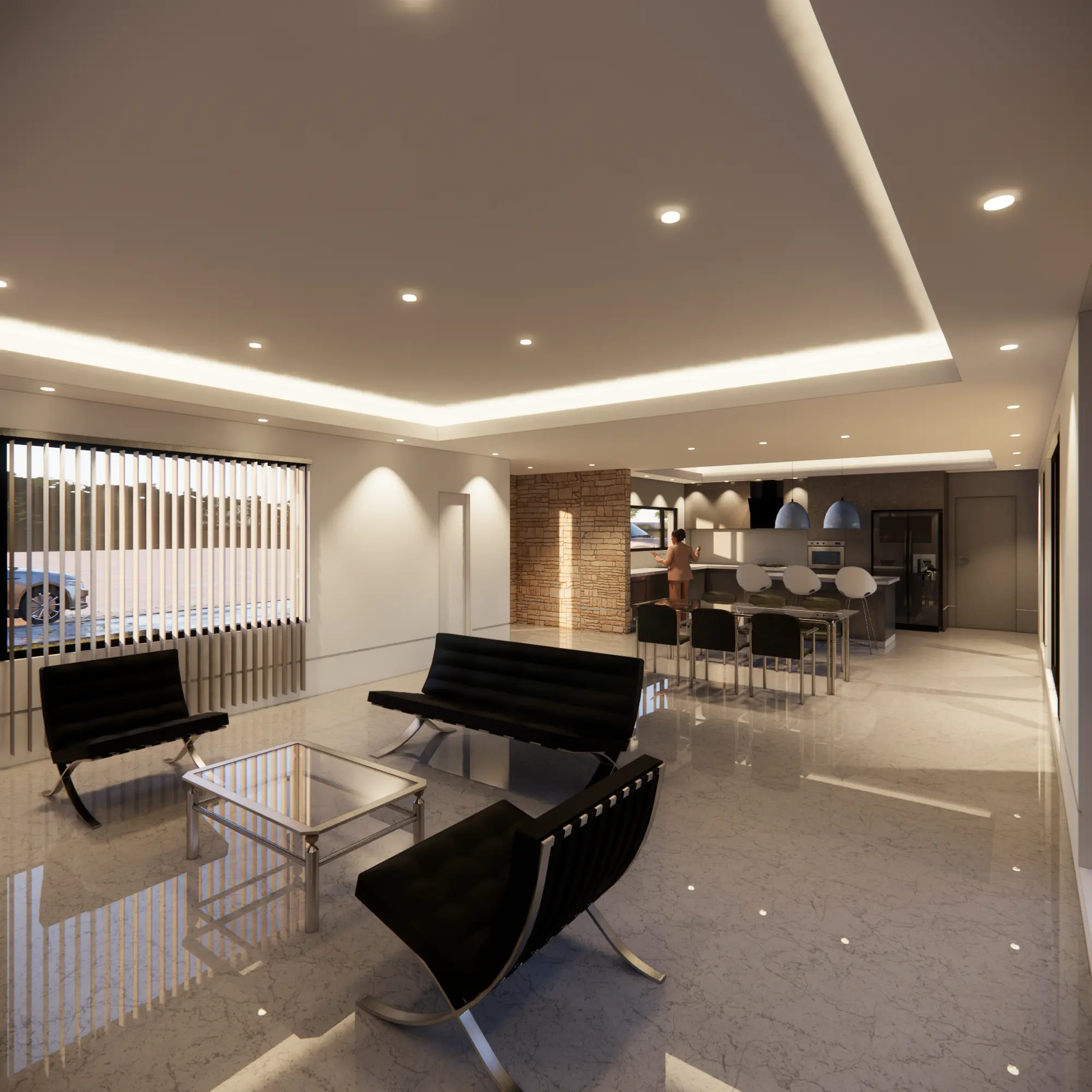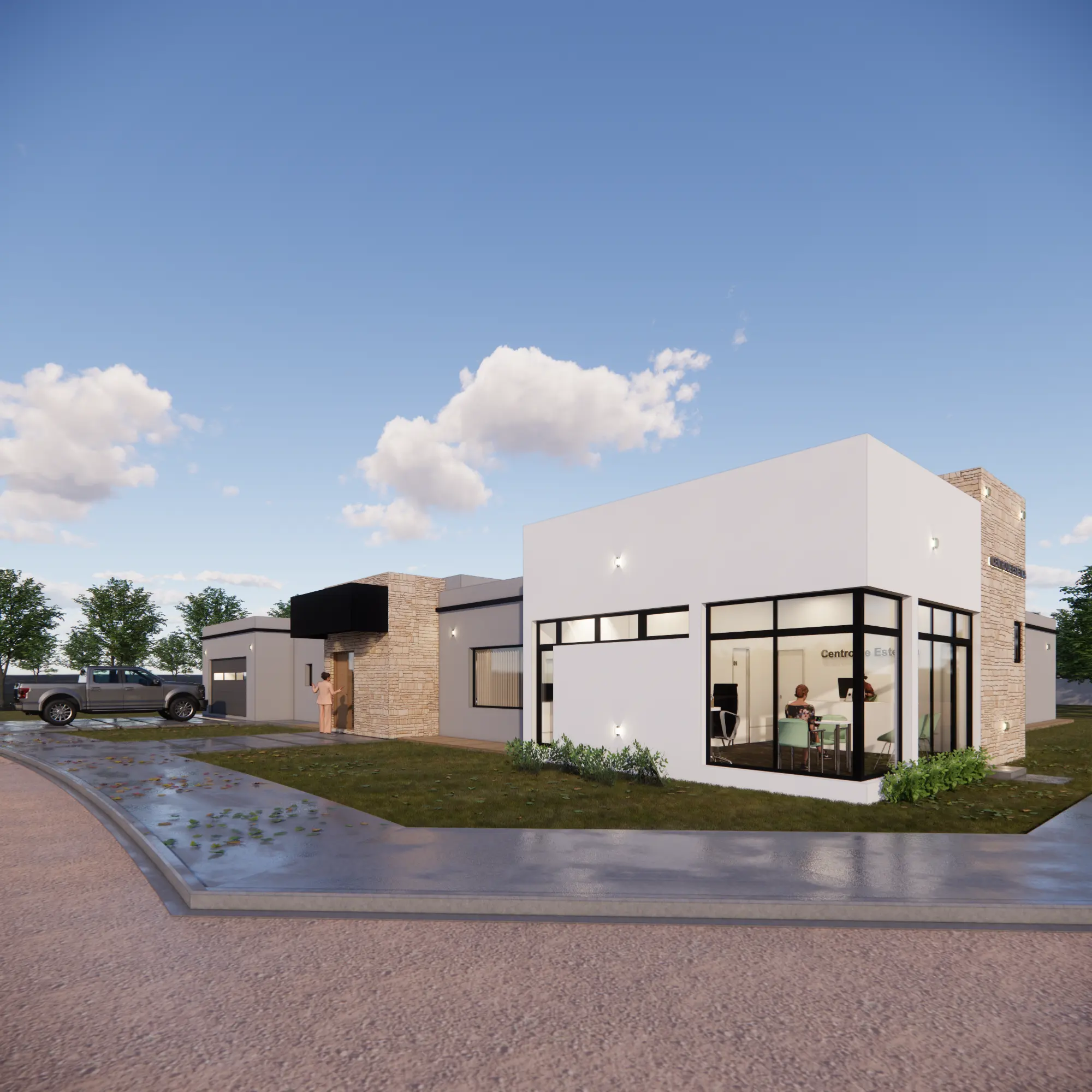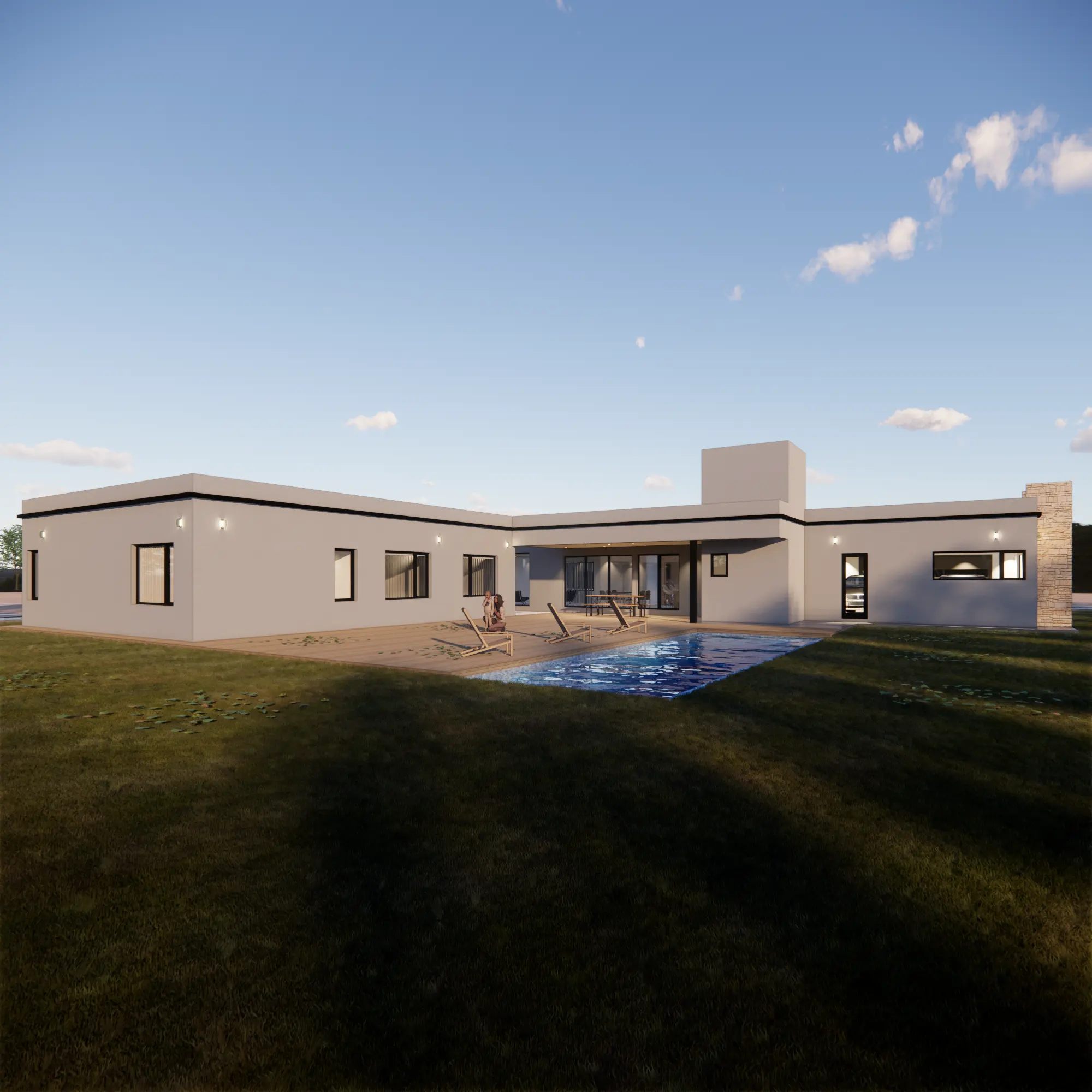 Se planteó la vivienda en “L”; demarcando un “Sector Público”, un “Sector Recreativo” y otro “Sector Privado”. Además aprovechando la esquina, durante su construcción diseñamos un Local Comercial para el funcionamiento de un Centro de Estética.